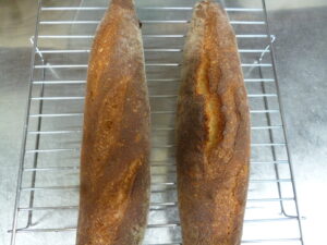 新着情報 発酵が進み過ぎた。 山崎逸朗 2026年2月23日 バゲットの発酵が進み過ぎた。過発酵という状態。こうなると焼いてもクープが開かず、のっぺらぼうの様なバゲットになってしまった。これまでバゲットを焼いてきて断面を見ると、生地が膨らみ切ってなかった。もっと膨らませようと発酵を促したらご覧の様な結果になってしまった。まだまだ研究が必要だ。 ← 酒の紹介